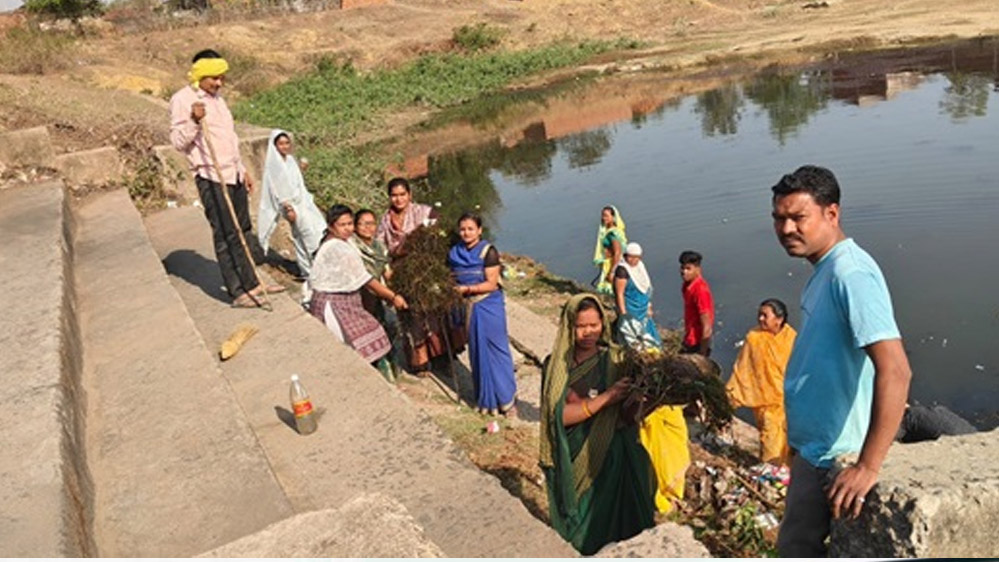 तृतीय लिंग सोनू सिंह उरांव ने सामुदायिक जल स्रोत में सामुदायिक सहभागिता से किया श्रमदान