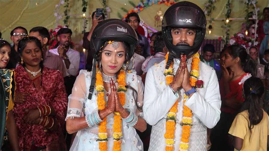 रविवार की रात करियाटोला में सगाई समारोह में युवक-युवती ने एक-दूसरे को अंगूठी पहनाने के साथ हेलमेट भी पहनाया। सगाई समारोह में यह द्श्य देख कुछ देर के लिए घराती-बाराती भी चौंक गए। लेकिन युवक-युवती ने एक-दूसरे को हेलमेट पहनाकर लोगों को वाहन चलाने के दौरान हेलमेट अनिवार्य का संदेश दिया।