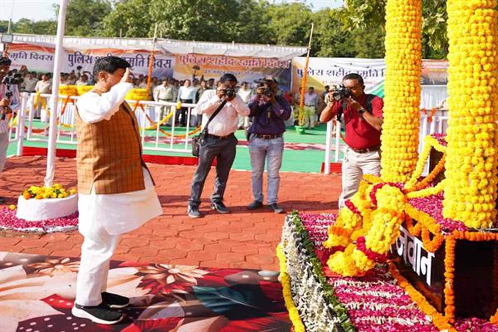 मुख्यमंत्री डॉ. मोहन यादव ने सोमवार को पुलिस स्मृति दिवस के अवसर पर पुलिस लाइन उज्जैन में कार्यक्रम को सम्बोधित करते हुए कहा कि प्रत्येक वर्ष 21 अक्टूबर को देश की आन्तरिक सुरक्षा, एकता, अखण्डता के लिये अपने प्राणों की आहुति देकर कर्त्तव्य-परायणता का अनूठा उदाहरण देने वाले शहीद पुलिसकर्मियों की स्मृति में पुलिस स्मृति दिवस मनाया जाता है। पुलिस देशभक्ति और जनसेवा के ध्येय वाक्य के साथ दिन-रात जनता की सेवा में तत्पर रहते हुए अपने प्राणों का उत्सर्ग कर देती है। ऐसे सभी बलिदानी पुलिसकर्मियों को मैं सैल्यूट करता हूं। पुलिसकर्मी देश की सेवाओं के संचालन में मदद करते हैं और देश की आन्तरिक सुरक्षा में सर्वोच्च योगदान देते हैं। कार्यक्रम में सांसद श्री अनिल फिरोजिया, विधायक श्री अनिल जैन कालूहेड़ा, श्री सतीश मालवीय, महापौर उज्जैन श्री मुकेश टटवाल, नगर निगम सभापति उज्जैन श्रीमती कलावती यादव सहित वरिष्ठ अधिकारी उपस्थित थे।